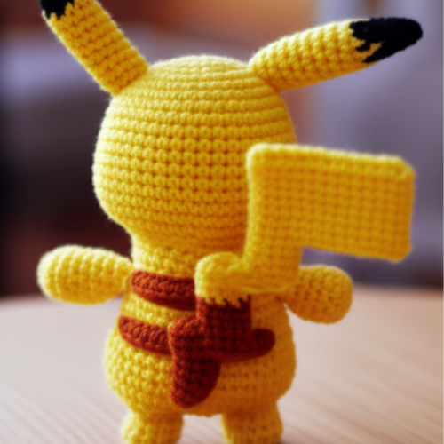 Tips are provided throughout the guide, including advice on how to keep stitches tight to prevent the stuffing from showing through. The instructions also explain how to keep track of rows using a marker to avoid losing your place. The guide provides detailed, step-by-step instructions for crocheting and assembling each part of the Pikachu, including the head, body, ears, forelegs, hind legs, tail, eyes, cheeks, and back spots.