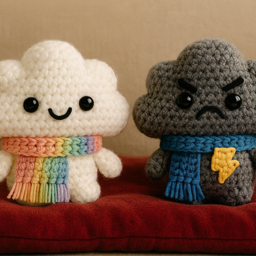 Unleash your creativity and crochet your very own whimsical Cloud Sprite friend with this comprehensive, free amigurumi pattern! This digital download pattern provides instructions to create two adorable 7-inch tall characters: Iris the Rainbow Cloud Sprite and Gale the Stormy Cloud Sprite.